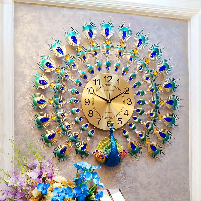 Big Deal 3D Peacock Wall Clock Europe Decor Wall Watch Home Living Room/Bedroom Mute Clock Wall Modern Desig