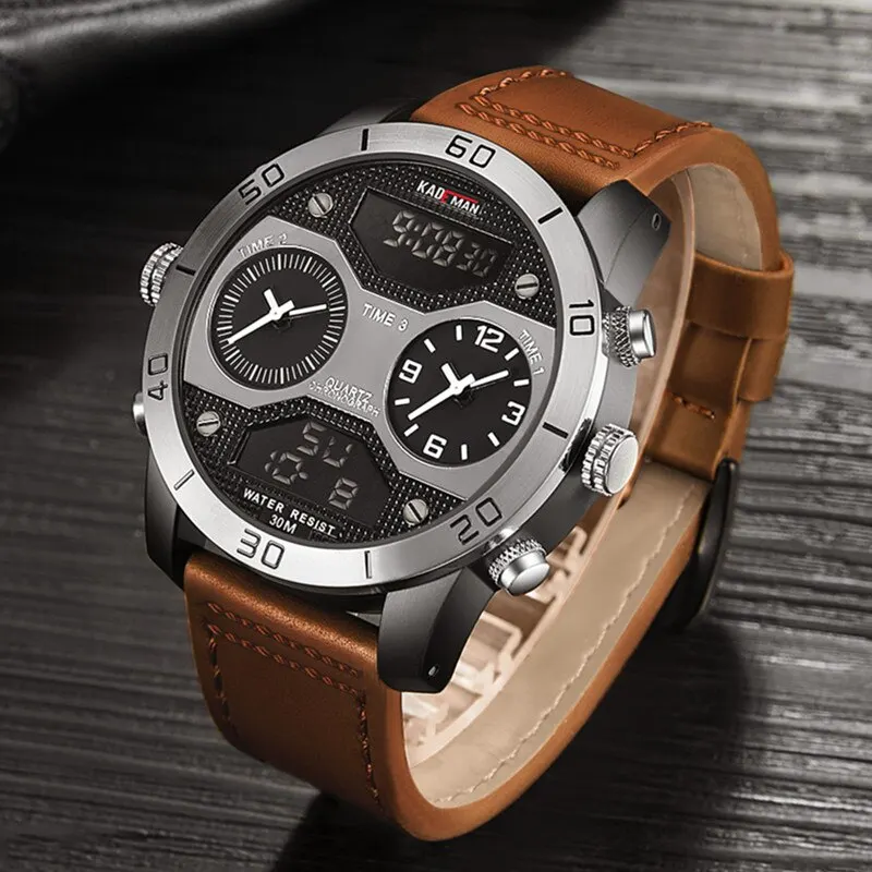 SALE KADEMAN Digital Analog Men Watch TOP Brand Waterproof Chronograph Leather Sport Military Watches Fa