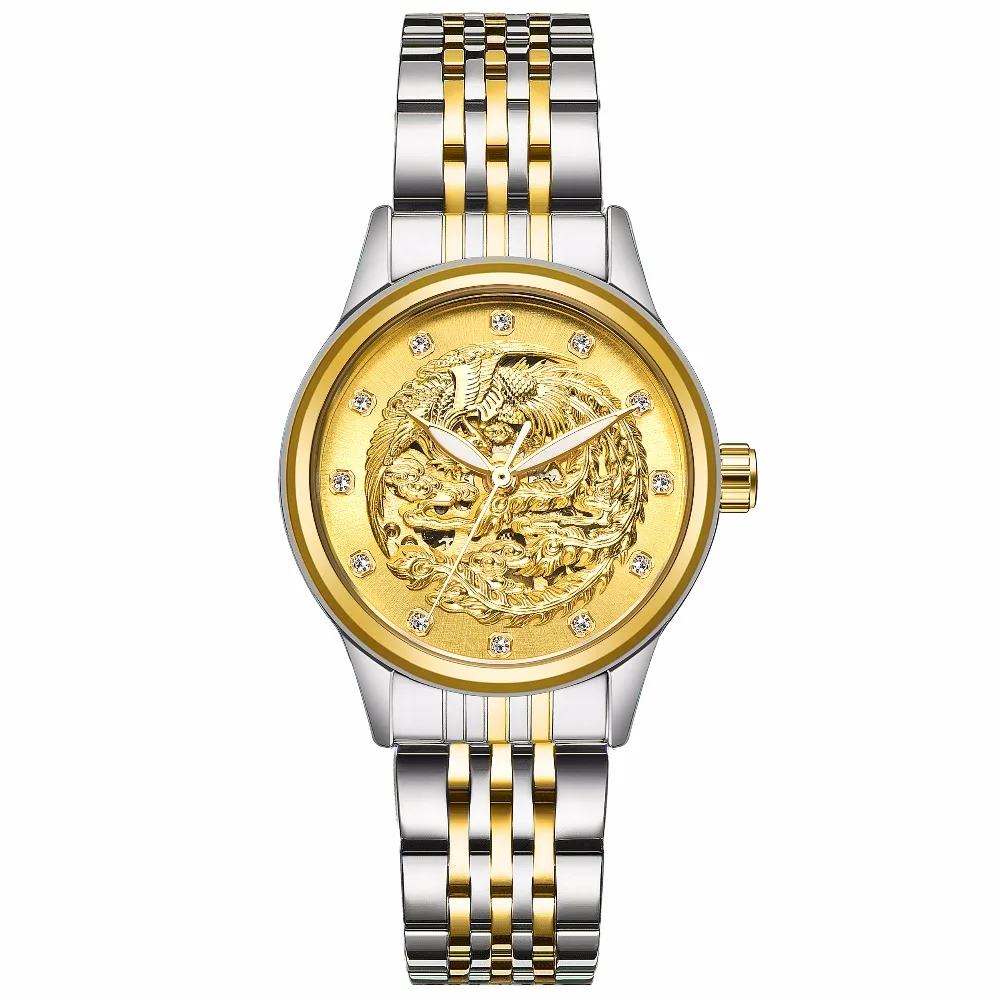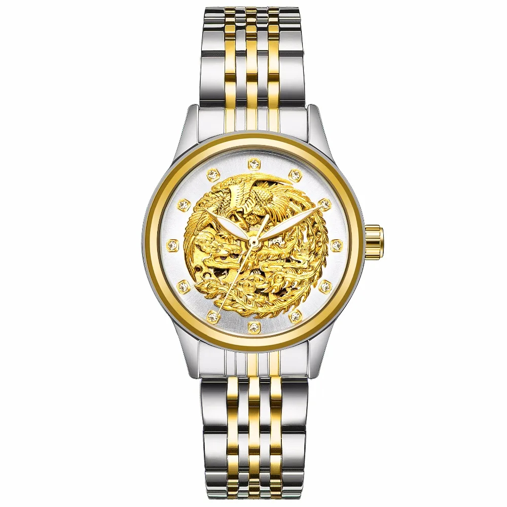 Best Product TEVISE High Quality Phoenix Gold Women Mechanical Watch with Automatic 3D CNC Waterproof Dragon Fac